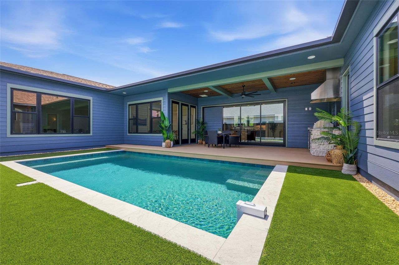 This one of a kind 2026 Spring Parade home offers a rare opportunity to own a new construction truly custom residence without having to build it yourself. Built from the ground up with intention, this 4 bedroom, 3.5 bath courtyard home with a private pool and three-car garage is a perfect blend of timeless design, advanced building science, and elevated living. No detail has been overlooked-even the ones you can't see-resulting in a home that offers superior energy efficiency, healthier indoor air quality, and lasting structural integrity.Beyond its beauty, this home is engineered for performance, durability, and long-term comfort with premium construction features rarely found in today's market, including:Sub-slab passive radon ventilation system, ZIP System air-sealed building envelope, Clark Dietrich E-Screen continuous drainage & ventilated cladding (rainscreen system), Pella Impervia fiberglass windows with SunDefense Low-E Argon glass, Bryant 20 SEER variable speed 5-ton, 4-zone HVAC system, AprilAire Healthy Air MERV 13 filtration system, Navien NPE-240A2 condensing tankless natural gas water heater with ComfortFlow technology, insulated hot water system with dedicated 3/4 recirculation line, Schluter Systems full waterproofing for all tiled showers. Designed with both luxury and livability in mind, the home features natural limestone veneer accents, stained wood tongue-and-groove porch ceilings, TimberTech decking, a turf courtyard, and a saltwater pool-all creating a private outdoor retreat. Inside, French white oak engineered flooring runs throughout, complemented by custom wood closet shelving and thoughtfully selected finishes.Attention to comfort and privacy continues with insulated bedroom and bathroom walls, including enhanced soundproofing in the primary suite. A 400-amp electrical service with generator-ready provisions, structured CAT6 wiring, and a dedicated low-voltage closet ensure the home is future-ready.This residence also delivers a fully integrated technology and entertainment experience, including an 8-camera surveillance system, Alarm.com security, and premium audio/visual systems throughout. The living room features a Samsung 65 Frame TV with in-ceiling surround sound and in-wall subwoofer, while additional audio zones extend to the dining room and patio for effortless entertaining.Residents of Town of Tioga enjoy a host of community amenities including a pickleball court, clubhouse, pool, playground, tennis courts, sand volleyball, basketball courts, and scenic walking trails. Tioga Town Center is just steps away with fine dining, boutique shopping, and Gainesville Health and Fitness. Conveniently located approximately 4 miles from I-75, 4.5 miles to North Florida Regional Medical Center, 8 miles to the University of Florida, and 11 miles to Shands Hospital, this home offers luxury, comfort, and accessibility in one exceptional package.
